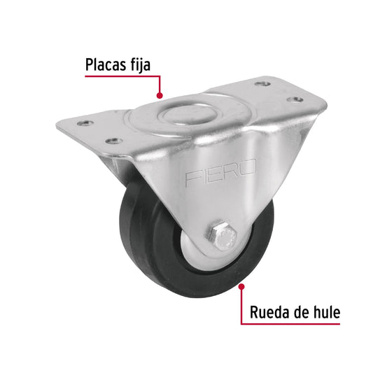 Proveedor:FieroRodaja hule 3', placa fija con balero, carga 110 kg, Fiero Caja con 4, 48600Rueda de hule con balero Placa fija de acero con acabado galvanizado Amortigua golpes y vibraciones Silenciosa Para pisos de...