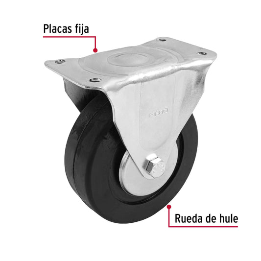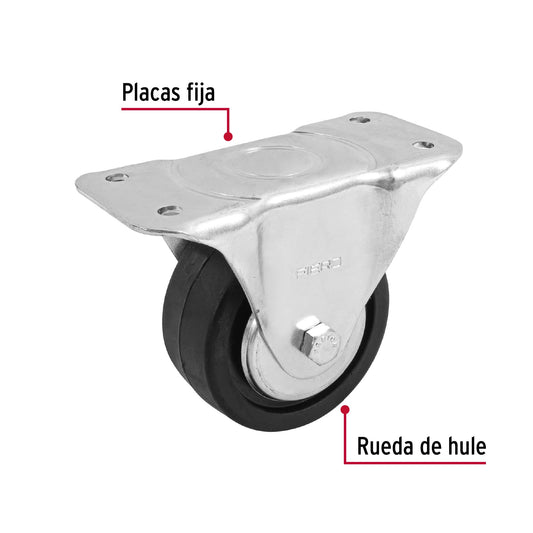 Proveedor:FieroRodaja hule 3', placa fija con buje, carga 90 kg, Fiero Caja con 4, 48599Rueda de hule y placa de acero con acabado galvanizado Sistema de fijación placa fija con buje Amortigua golpes y...