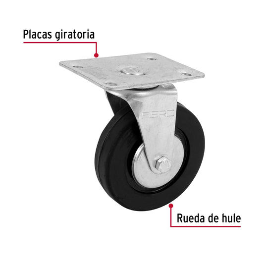 Proveedor:FieroRodaja hule 3', placa giratoria con buje, carga 90 kg, Fiero Caja con 4, 48610Rueda de hule con buje y placa de acero con acabado galvanizado Sistema de fijación con placa giratoria Amortigua golpes y vibraciones Silenciosas Para...