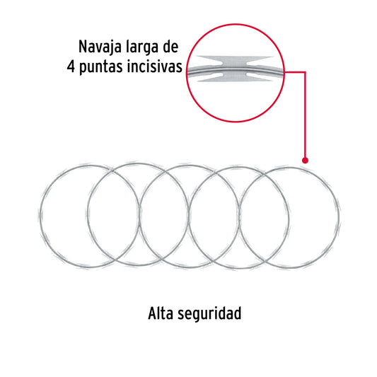 Proveedor:FieroRollo de púa concertina alta seguridad, 45 cm diámetro, 44920Fabricada en lámina de acero con acabado galvanizado resistente a la corrosión Navaja larga de 4 puntas incisivas, para alta...