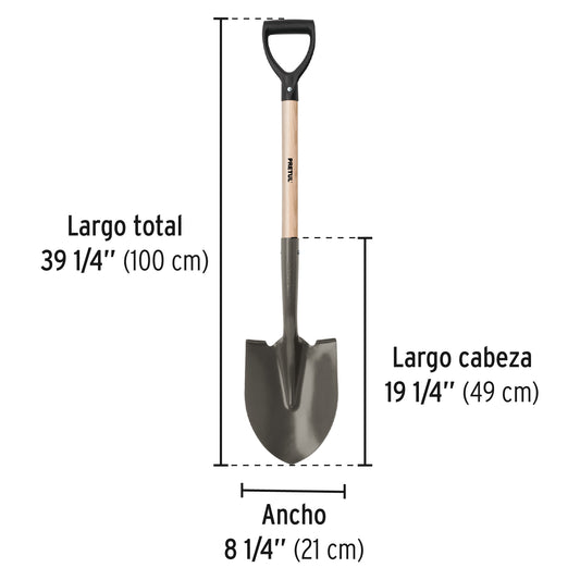 Proveedor:PretulPala redonda, puño 'D', mango 28-1/2', Pretul Caja con 3, 22502Cabeza de acero al carbono Mango de madera con puño "D" plástico Ensamble interferencia y remache Hombros al frente