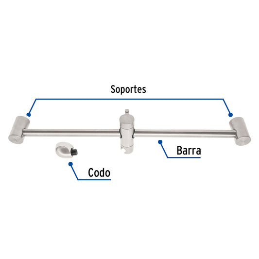 Proveedor:FosetBarra mural con codo, satín, Foset Riviera, 45091Cuerpo de acero inoxidable Codo y soporte de ABS Permite ajustar la altura y ángulo de las regaderas tipo teléfono...