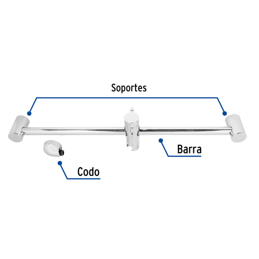 Proveedor:FosetBarra mural con codo, cromo, Foset Riviera, 45090Cuerpo de acero inoxidable Codo y soporte de ABS Permite ajustar la altura y ángulo de las regaderas tipo teléfono...