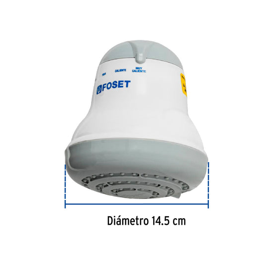 Proveedor:FosetRegadera eléctrica, 4 temperaturas, 14.5cm, azul, Foset Caja con 4, 45155Cuerpo de polipropileno Manguera de PVC Brazo para montaje incluido 4 Niveles de temperatura