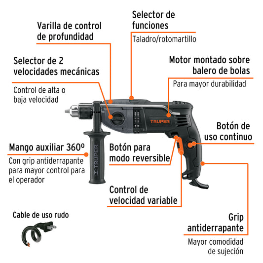Proveedor:ExpertTaladro 1/2' 700 W, industrial, Truper, 16665