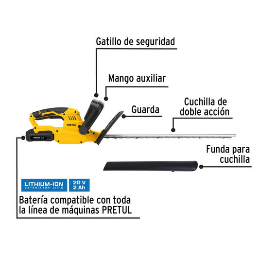 Proveedor:PretulDesbrozadora inalámbrica 20V, 1 batería 2Ah, 1 carg. PRETUL, 28272Cabeza ajustable a 4 posiciones (0°, 25°, 45° y 67°) Eje recto permite cortar áreas más grandes en menor tiempo,...