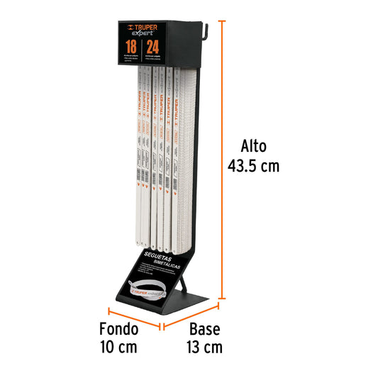 Proveedor:TruperRack despachador con 300 seguetas, 55582Producto incluido Para exhibir 300 seguetas bimetálicas con cuerpo flexible fabricado de acero Para mostrador, panel ranurado o perfocel