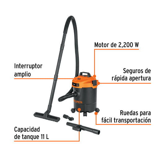 Proveedor:TruperAspiradora sólidos y líquidos, 12 gal, soplador desmontable, 12093Motor de 5 HP para trabajos exigentes Tecnología de reducción de ruido Capacidad del tanque 12 gal (45 L) Soplador...