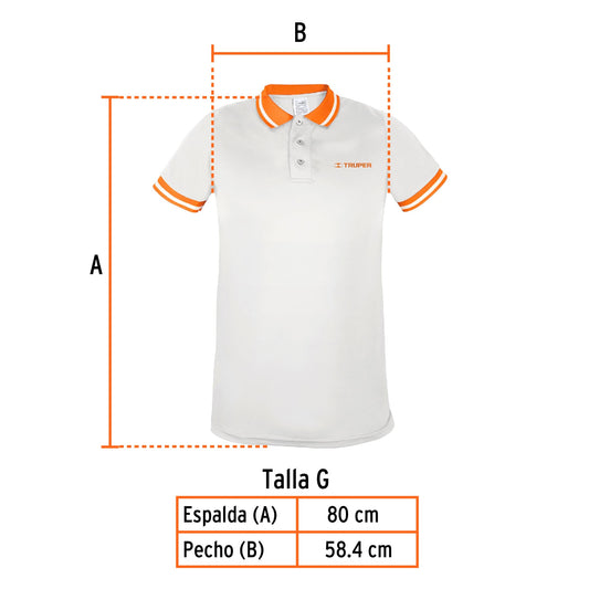 Proveedor:TruperPlayera polo performance para mujer, blanca, G, Truper, 69980100% poliéster Tela respirable para mayor frescura y comodidad Ideal para climas calurosos y húmedos Logotipos bordados Ajuste silueta para dama...