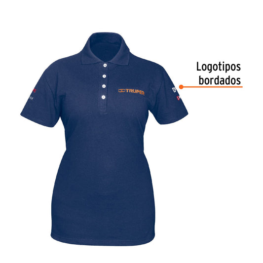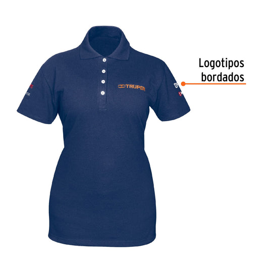 Proveedor:TruperPlayera polo para mujer, azul, M, Truper, 6047350% algodón 50% poliéster Logotipos bordados Tejido piqué Ajuste silueta para dama Cuello rib
