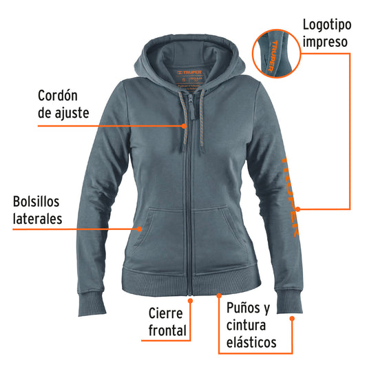 Proveedor:TruperSudadera gris para dama, talla CH, Truper, 6503592% algodón, 8% elastano Afelpado interior suave al tacto Ajuste clásico Gorro con cordón ajustable Puños y cintura elásticos para...