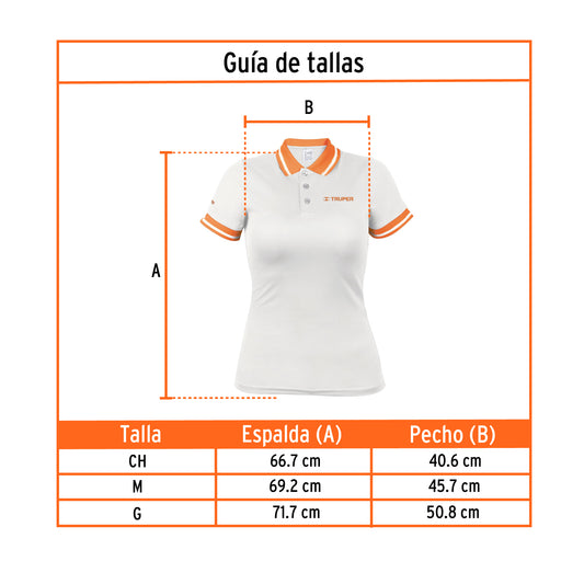 Proveedor:TruperPlayera polo performance para mujer, blanca, CH, Truper, 69978100% poliéster Tela respirable para mayor frescura y comodidad Ideales para climas calurosos y húmedos Logotipos bordados Ajuste silueta para...