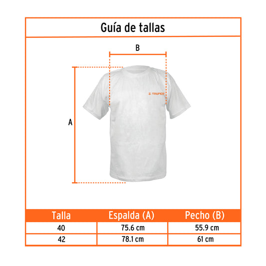 Proveedor:TruperPlayera cuello redondo para hombre, blanca, G, Truper, 60005