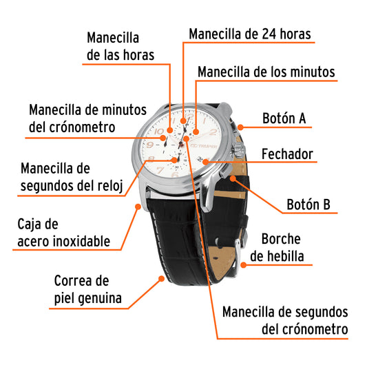 Proveedor:TruperReloj para caballero, correa de piel, Truper, 60071