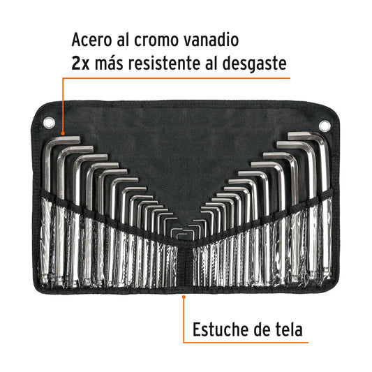 TruperJuego 30 llaves allen largas mixtas punta bola, estuche Caja con 3, 15562