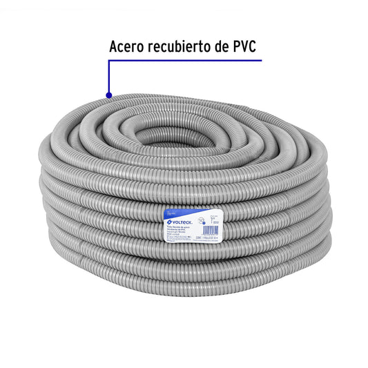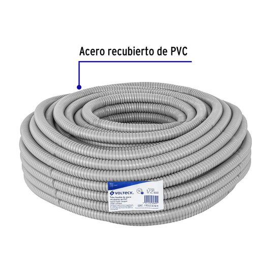Proveedor:VolteckRollo de 50 m de tubo flexible liquid tight de 1/2', Volteck, 47321Fabricado en acero galvanizado recubiertos de PVC, con engargolado helicoidal Flexibilidad y maleabilidad en zonas de difícil acceso, con radios de curvatura cerrados...