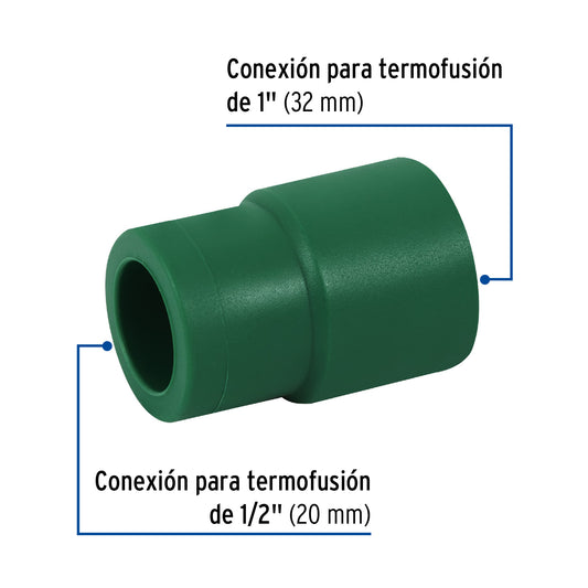 Proveedor:FosetReducción de PPR 1-1/2' x 1', Foset Caja con 4, 45470Cuerpo de PPR (Polipropileno Copolímero Random) Para unir por termofusión Resistente a la corrosión, oxidación, incrustaciones y a los rayos...