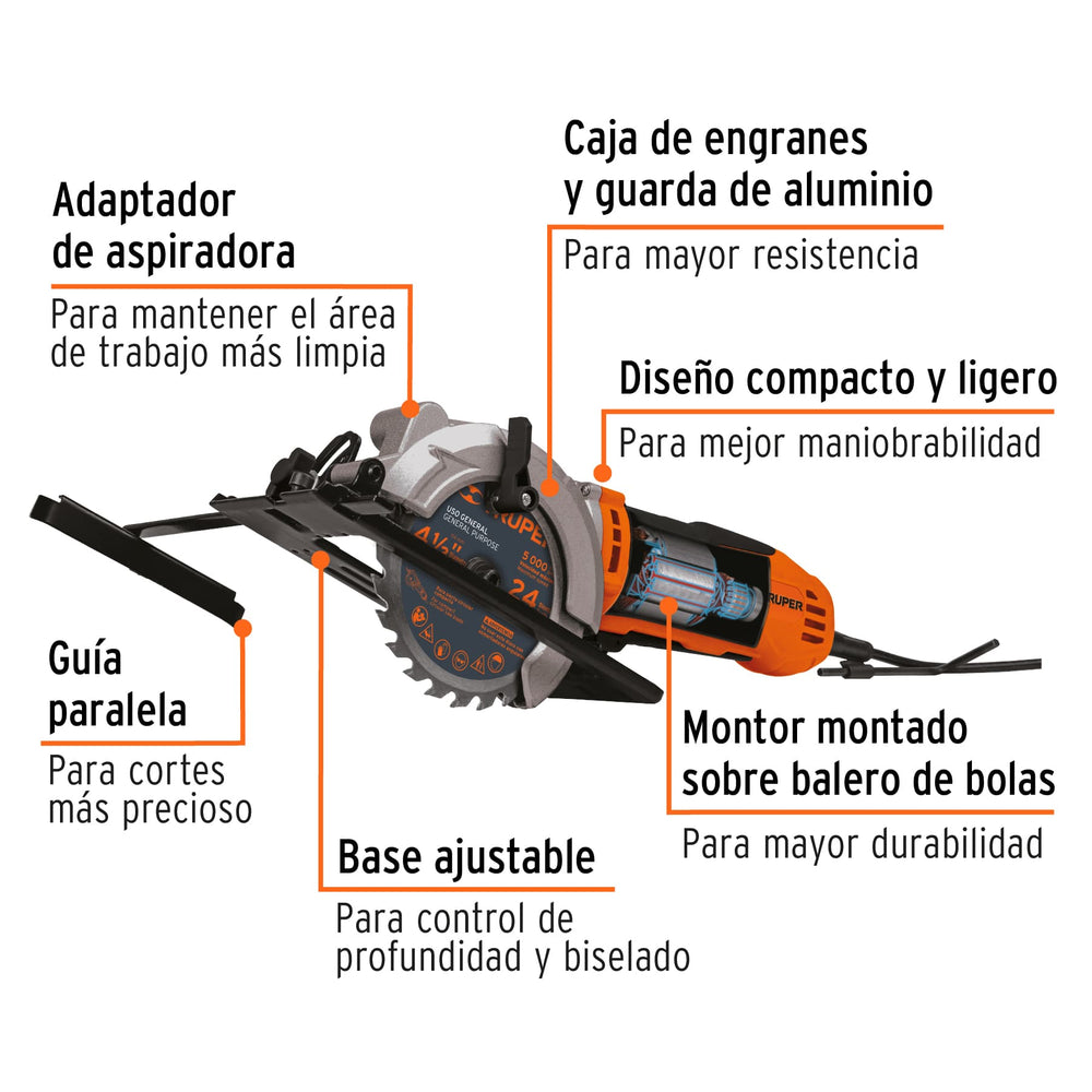 - Motor de 750 W, montado sobre balero de bolas para mayor vida útil y mejor desempeño