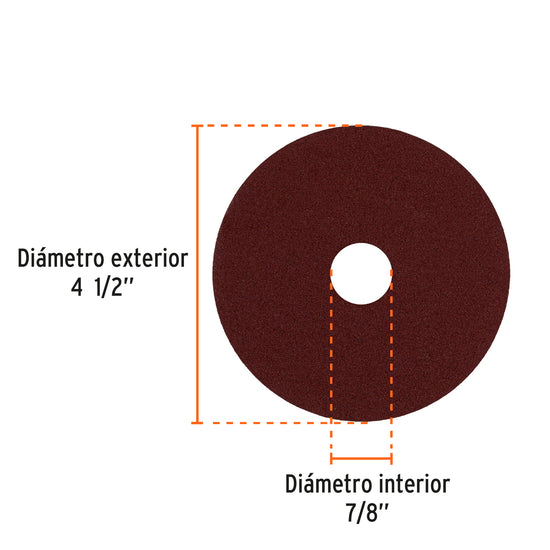 Disco lija 4-1/2' con respaldo de fibra, grano 120, Truper Caja con 5, 100128