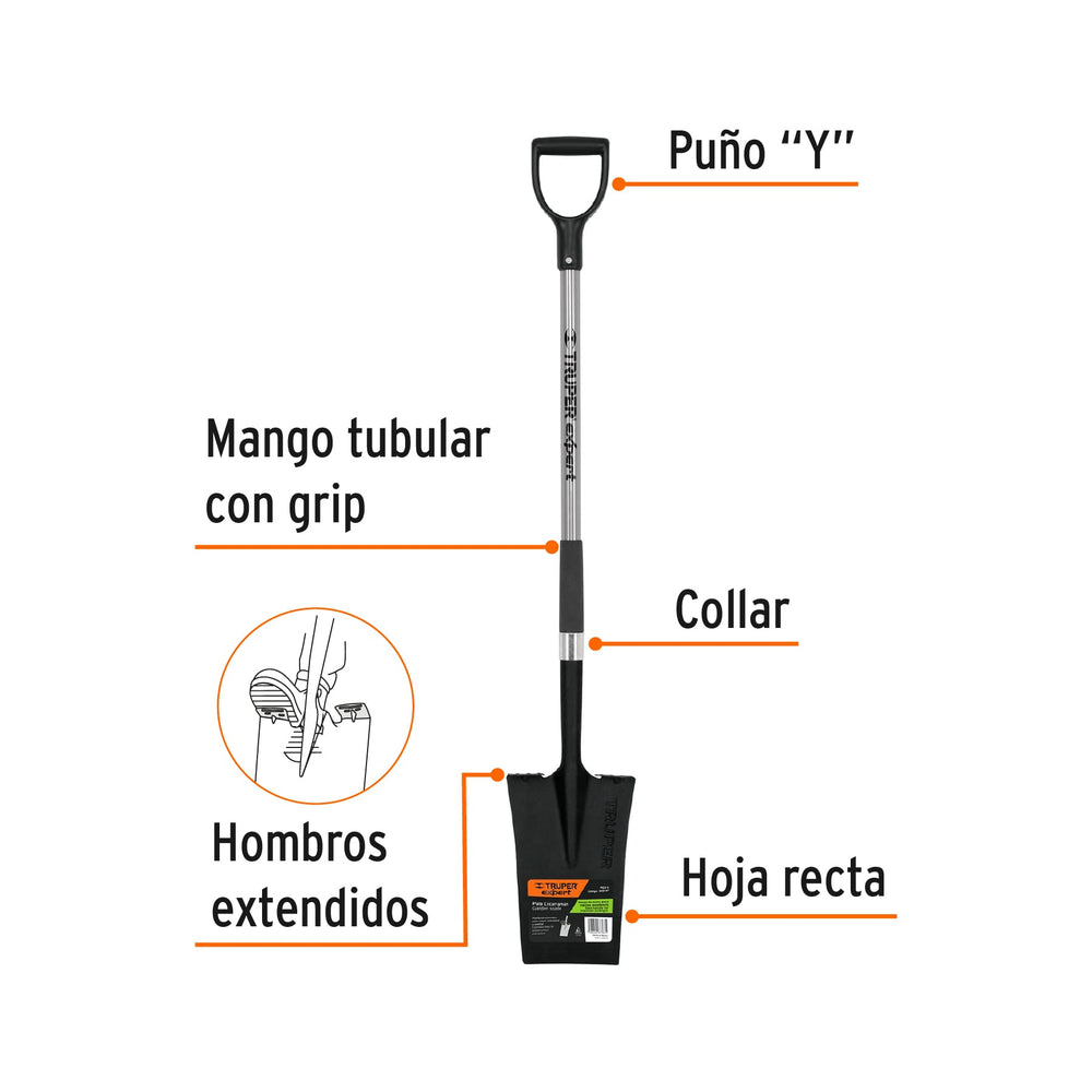 Pala escarramán, puño 'Y', mango acero, Truper Expert Caja con 3, 100147