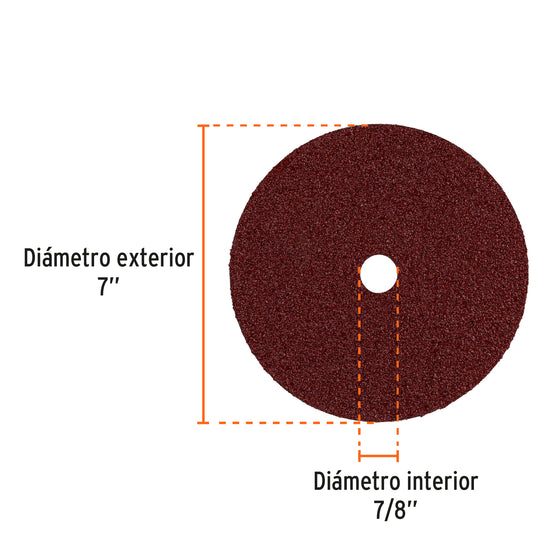 Disco de lija de 7' con respaldo de fibra, grano 36, Truper Caja con 5, 100160