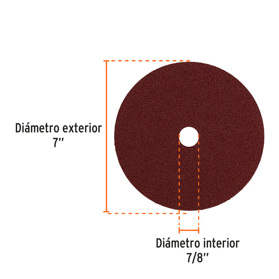 Disco de lija de 7' con respaldo de fibra, grano 50, Truper Caja con 5, 100161