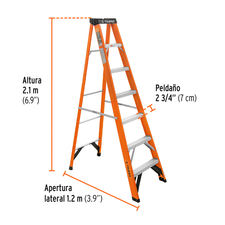 Escalera de tijera, tipo ll, 6 peldaños, fibra de vidrio, 100226