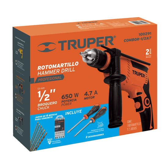 Combo rotomartillo 1/2' 650W, 6 brocas y 2 desarmadores,PRO, 100291