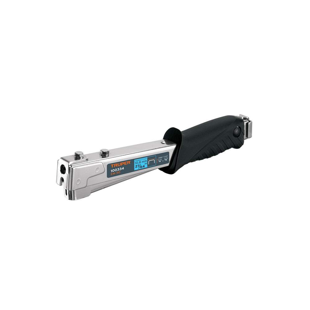- Su resorte permite engrapar en maderas duras, aglomerados, plásticos y triplay