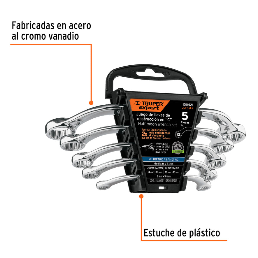 Juego de 5 llaves pulidas de obstrucción en 'C' mm, EXPERT, 100421