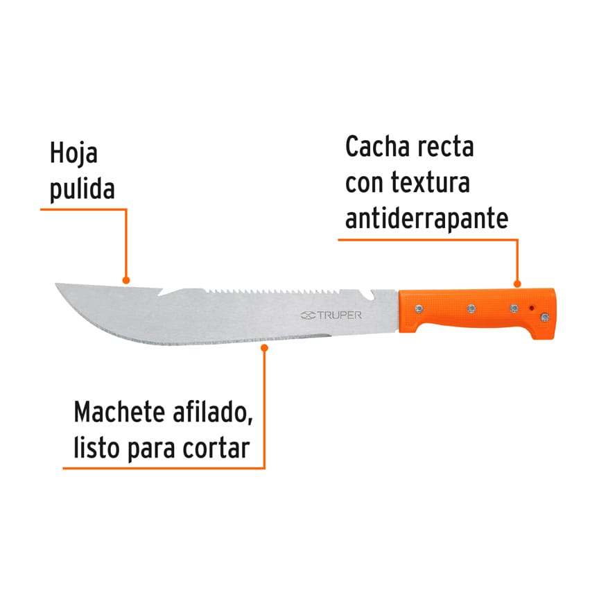 Machete rambo 12', cacha remachada naranja, TRUPER Caja con 4, 100654