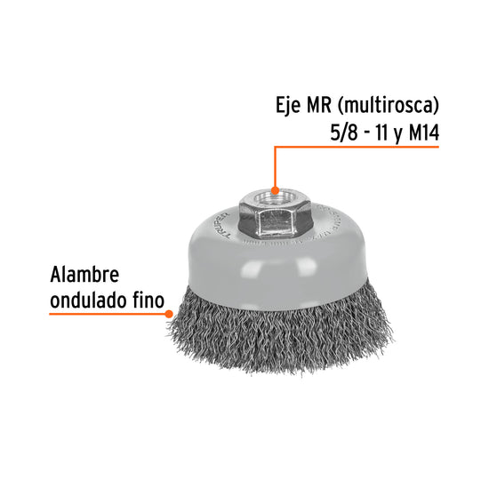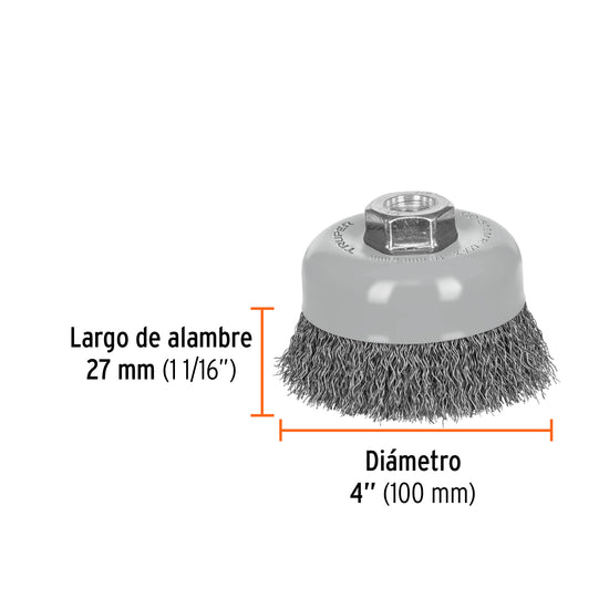 Carda copa 4' alambre ondulado fino, Multi-rosca, Truper Caja con 4, 100858