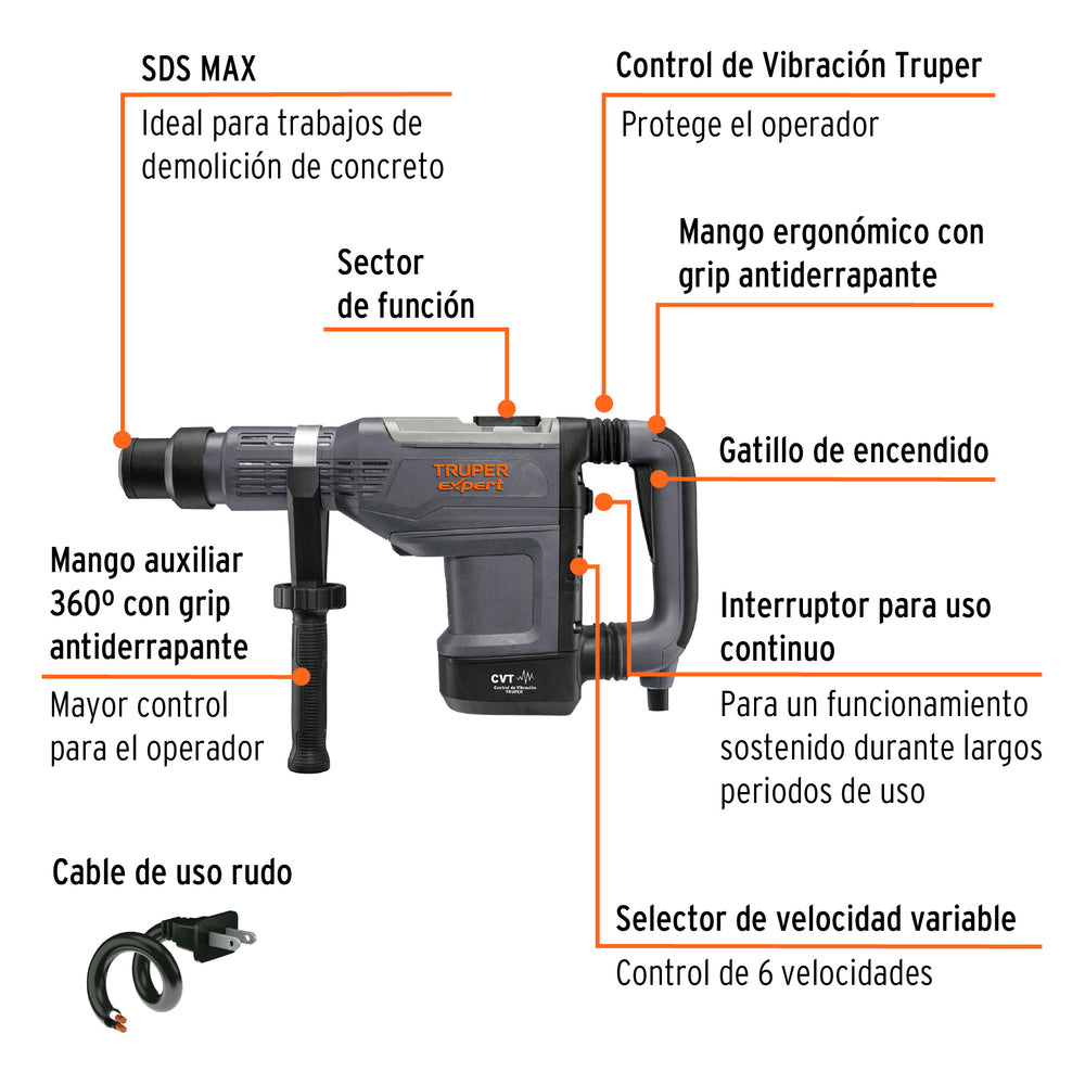 Rotomartillo SDS Max 9kg, 15J, 1500W, TRUPER EXPERT, 100869Rotomartillo SDS Max 9kg, 15J, 1500W, TRUPER EXPERT, 100869Rotomartillo SDS Max 9kg, 15J, 1500W, TRUPER EXPERT, 100869