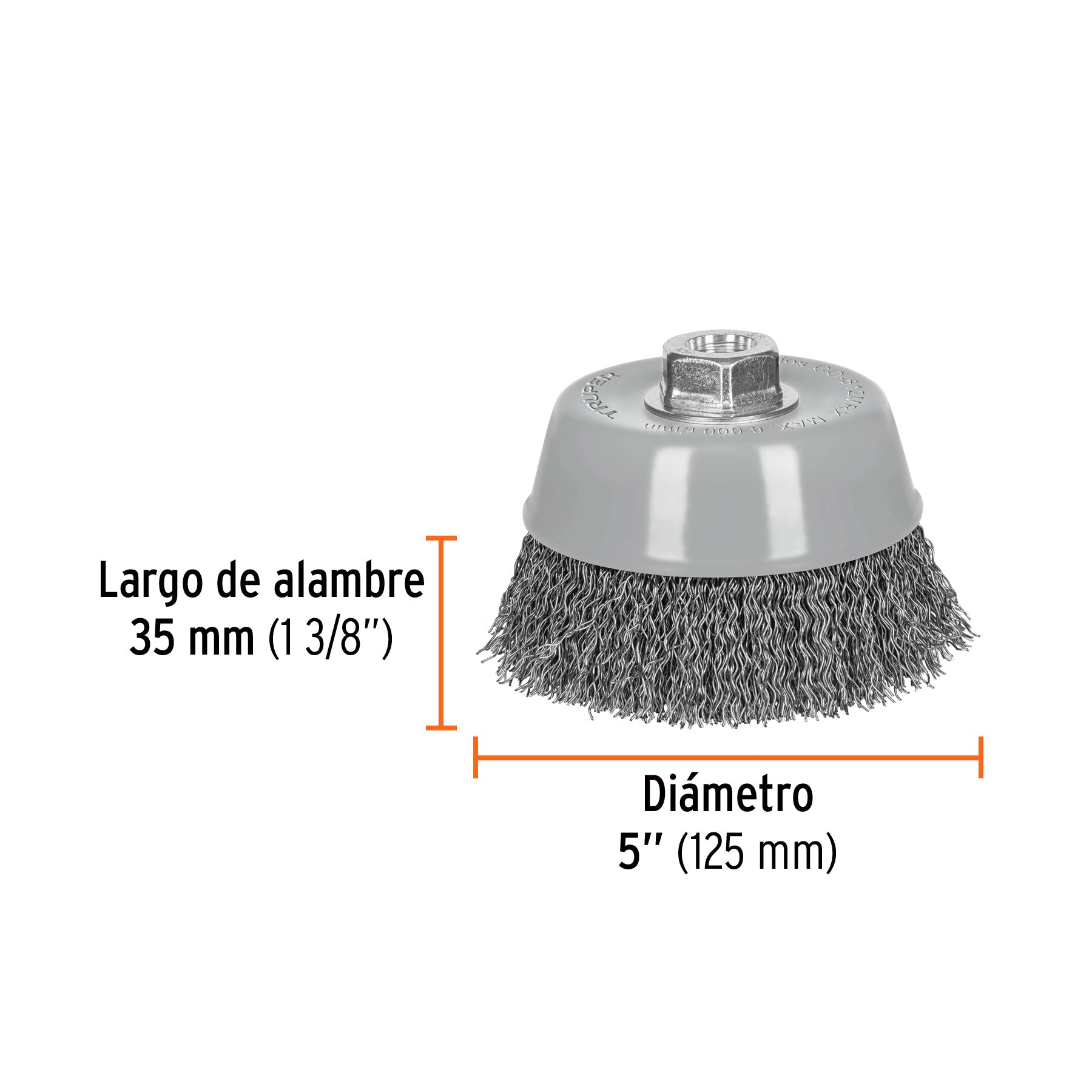 Carda copa 5' alambre ondulado grueso, Multi-rosca, Truper Caja con 4, 100870