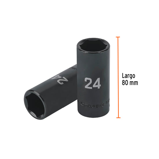 Dado largo impacto de 24 mm, 6 puntas, cuadro 1/2', Truper Caja con 6, 100923