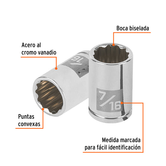 Dado de 7/16', 12 puntas, cuadro 1/4', Truper Caja con 6, 100962