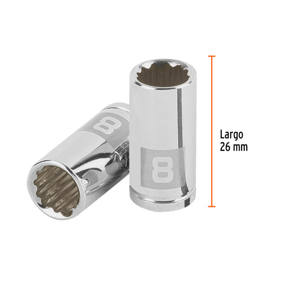 Dado de 8 mm, 12 puntas, cuadro 1/4', Truper Caja con 6, 100980