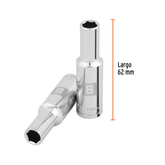 Dado largo de 8 mm, 6 puntas, cuadro 3/8', Truper Caja con 6, 100993