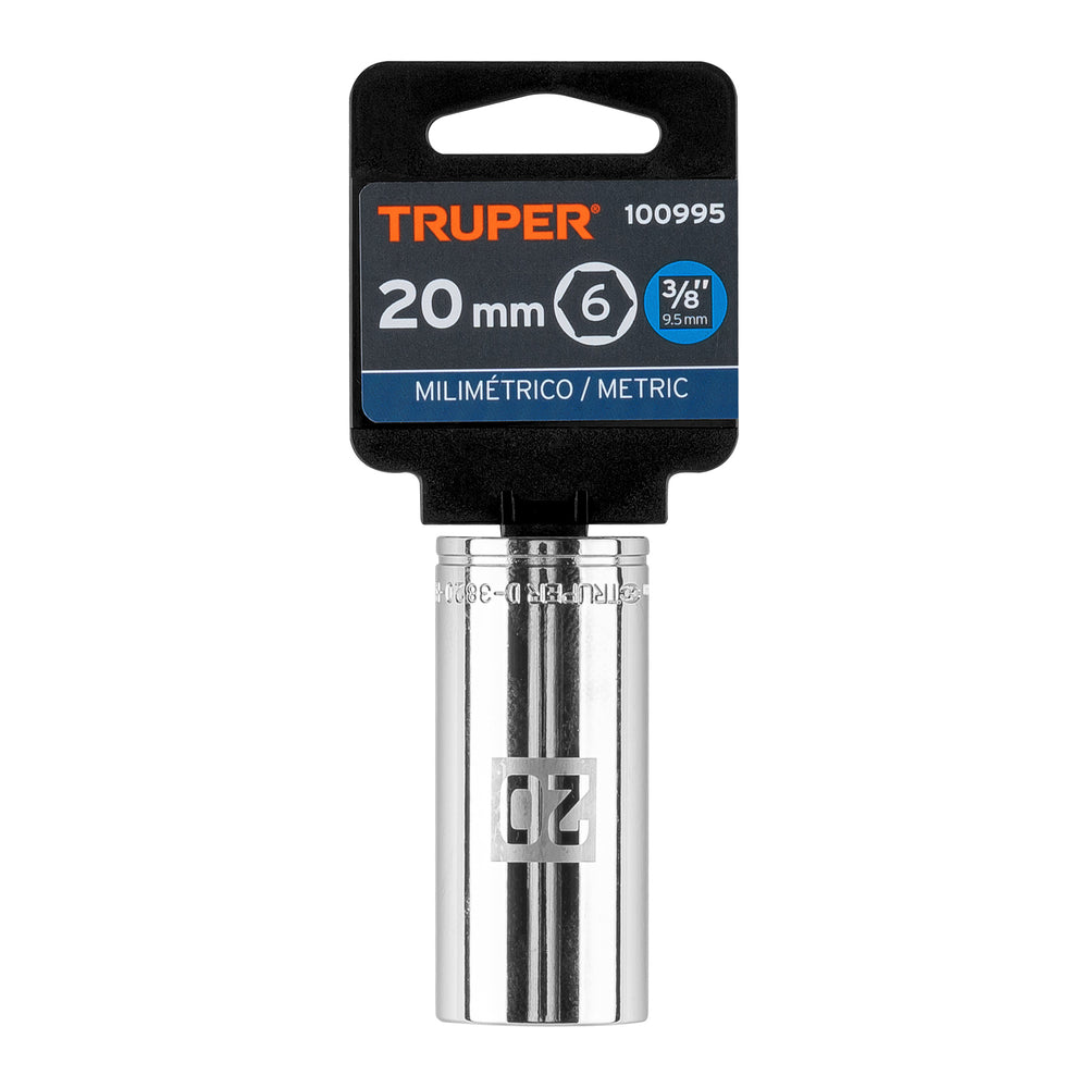 Dado largo de 20 mm, 6 puntas, cuadro 3/8', Truper Caja con 6, 100995