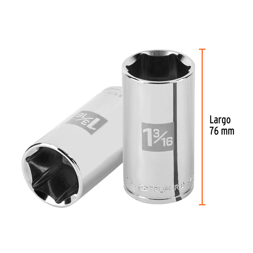Dado largo de 1-3/16', 6 puntas, cuadro 1/2', Truper Caja con 6, 100999