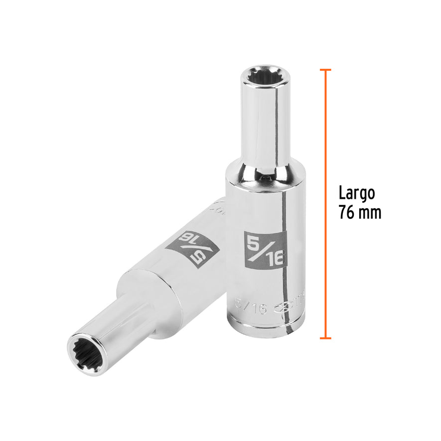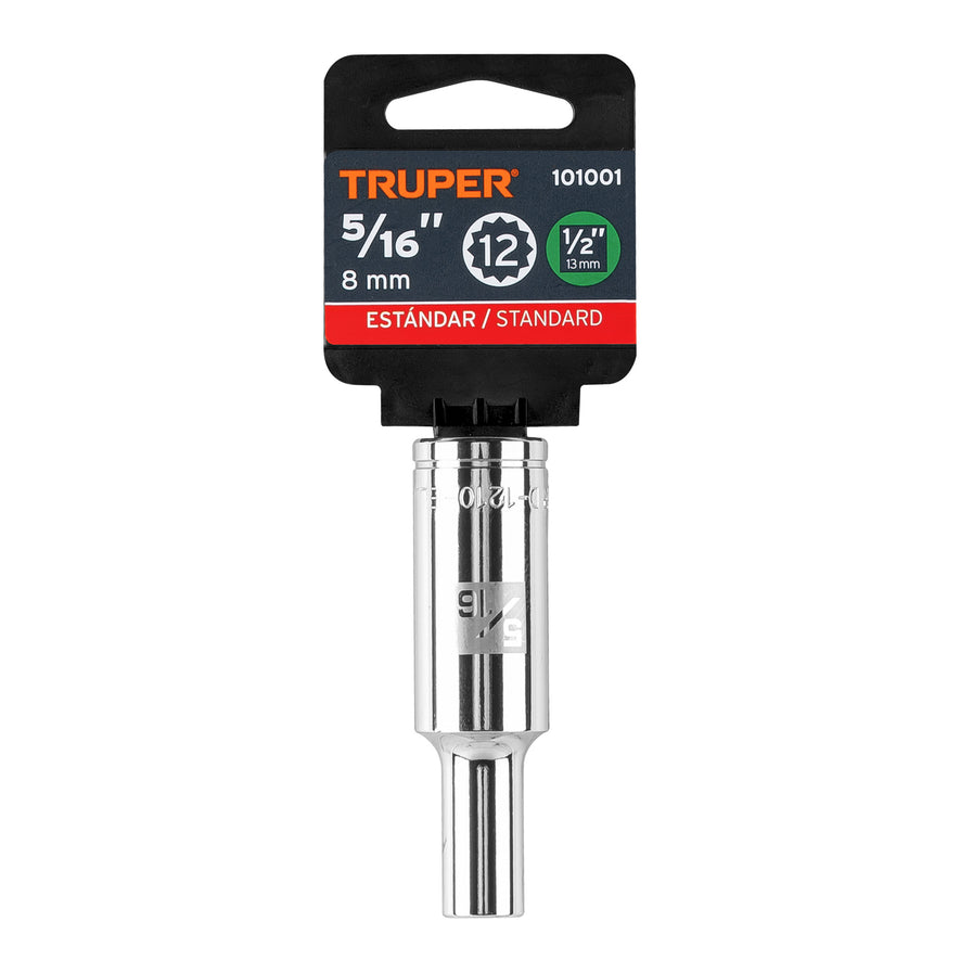 Dado largo de 5/16' 12 puntas, cuadro 1/2', Truper Caja con 6, 101001