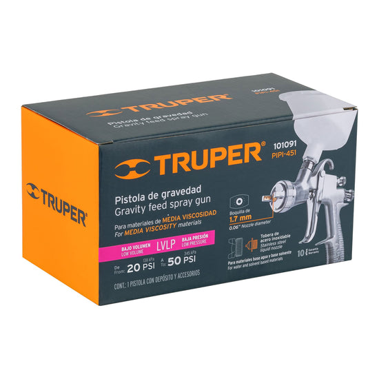 Pistola p/pintar gravedad LVLP vaso plástico, 1.7 mm, Truper, 101091Pistola p/pintar gravedad LVLP vaso plástico, 1.7 mm, Truper, 101091Pistola p/pintar gravedad LVLP vaso plástico, 1.7 mm, Truper, 101091Pistola p/pintar gravedad LVLP vaso plástico, 1.7 mm, Truper, 101091