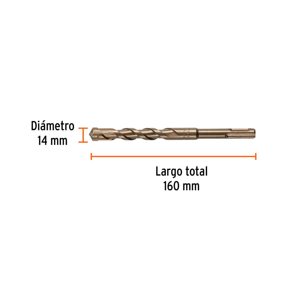 Broca SDS Plus 14 x 160 mm, Truper Caja con 5, 101201