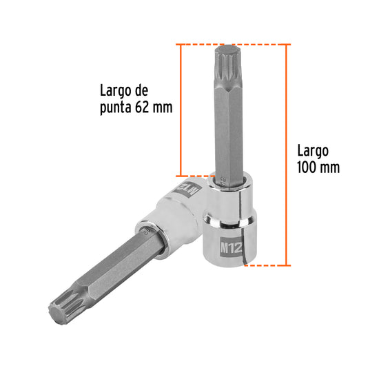 Dado punta larga bristol M12, cuadro 1/2', Truper Caja con 6, 101302