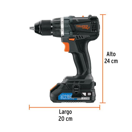Taladro inalámbrico 1/2', 20V, s/accesorios, TRUPER MAX, 101404