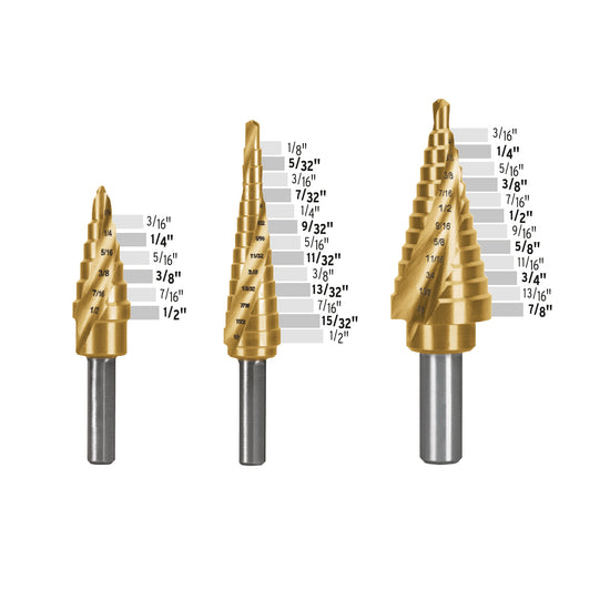 Juego de 3 brocas escalonadas de titanio, Truper Expert, 101557Juego de 3 brocas escalonadas de titanio, Truper Expert, 101557Juego de 3 brocas escalonadas de titanio, Truper Expert, 101557Juego de 3 brocas escalonadas de titanio, Truper Expert, 101557