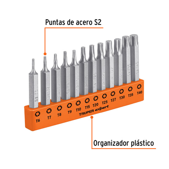 Juego de 12 puntas torx combinadas largo 2', Truper Expert Caja con 6, 101678