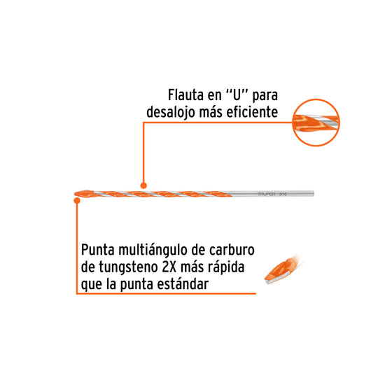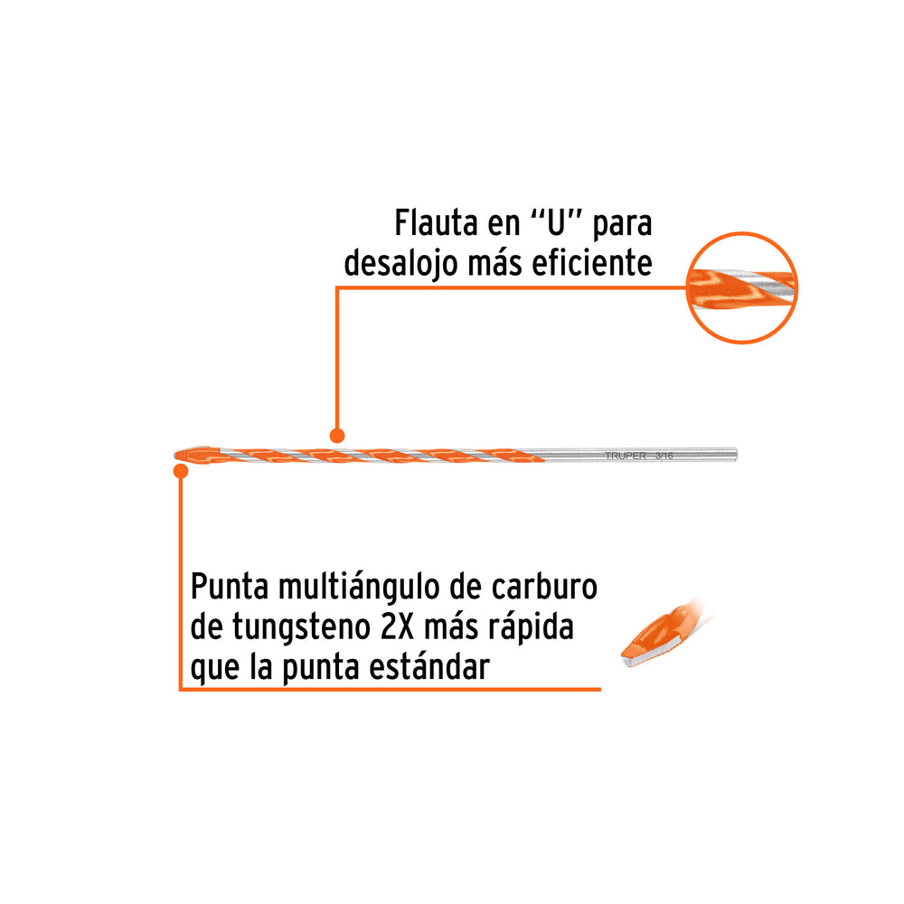 Broca multimaterial 3/16 x 6', Truper Caja con 10, 101805