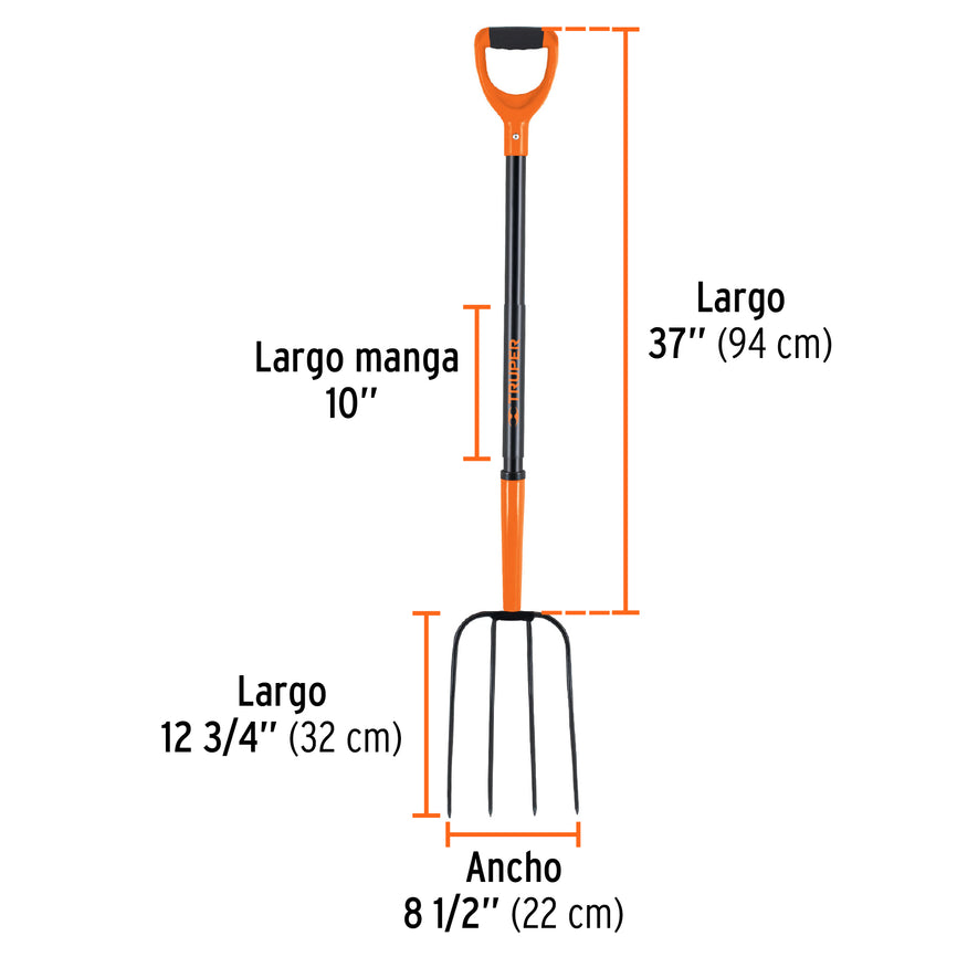 Bieldo para paja, 4 dientes, mgo de acero 37',puño'Y' TRUPER Caja con 3, 102113