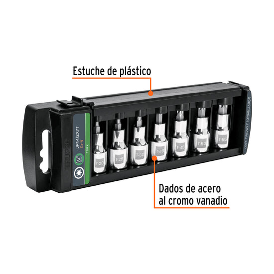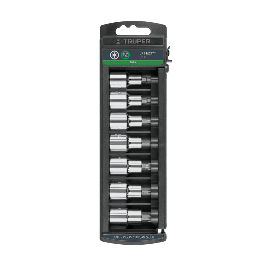 Juego de 7 dados cuadro 1/2' punta torx, Truper, 102237